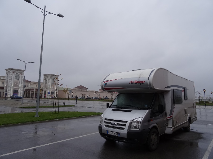 Il commence à se faire tard, va falloir trouver un parking pour la nuit, les aires de repos étant inexistantes – seulement des stations-services dont les parkings ne nous encouragent pas à rester tellement ils sont étroits – nous optons pour un énorme parking de magasins outlets quasi désert.