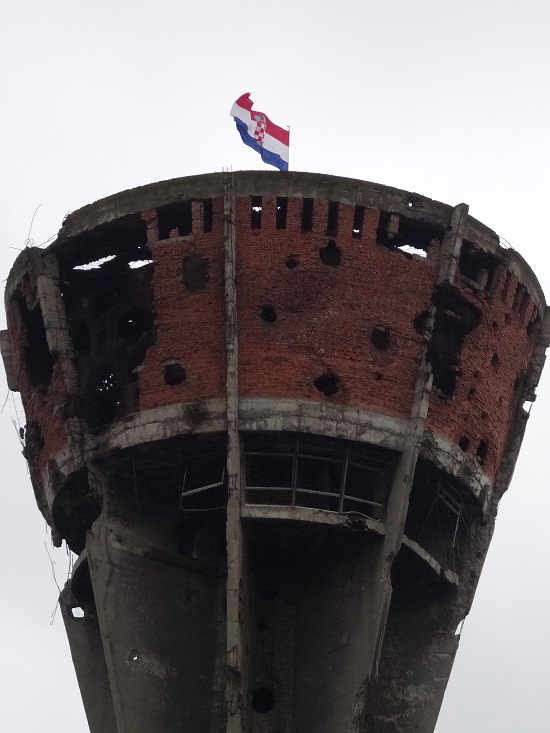 Première étape à Vukovar, malheureusement sous la pluie qui ne nous quitte plus ces derniers jours. Cette ville est un lieu de mémoire des conflits de 1991, son château d’eau et quelques maisons du centre-ville portent encore les traces des atrocités qui s’y sont déroulés. Cette ville « souvenirs » permet de mesurer toute l’horreur d’une guerre et impose le silence, le recueillement.