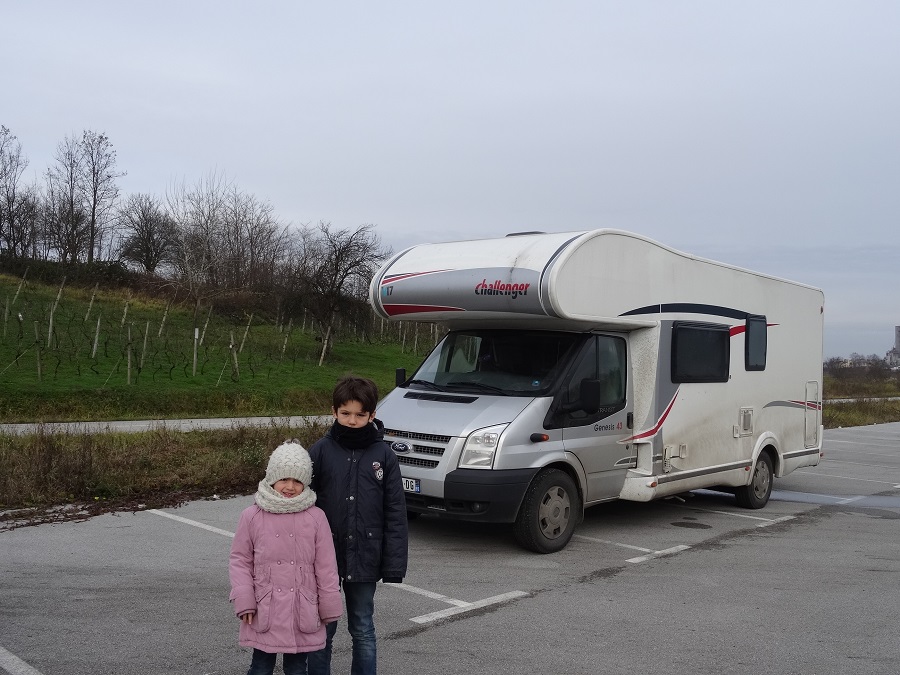 Arrivée sur place, c’est une « Oasis » qui s’offre à nous avec eau, électricité et Wifi certes !!! Mais avec le forfait, nous avons même le droit à une entrée dans le centre aquatique fraichement inauguré avec piscine à jets et bassin de nage. Nous sommes comblés !! A quelques mètres de notre stationnement nous avons même l’amorce d’une piste cyclable qui nous permettra, si le temps le permet, de ressortir les vélos pour aller faire le marché. Pour fêter cette journée réussie nous décidons à l’unanimité de déboucher notre bouteille de vin Serbe (il est vrai qu’avec quelques gâteaux apéritifs il est assez facile d’avoir l’unanimité). La vinification Serbe semble plutôt réussie, à moins que nous commencions réellement à perdre nos repères gustatifs !!! Il est 20h30, Anna dort déjà depuis 20 minutes, le sommeil ne devrait pas tarder à nous gagner également après cette journée bien remplie…
