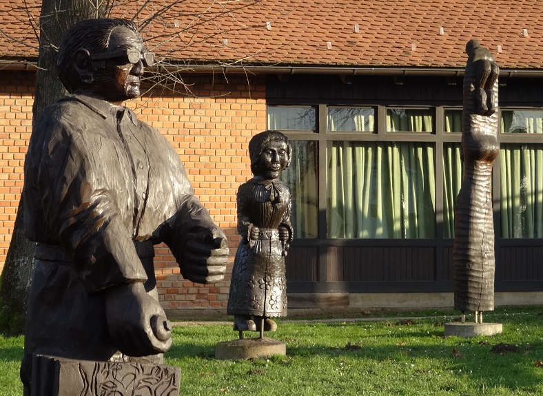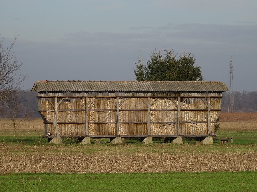 Le ciel bleu est de retour, nous chaussons avec plaisir nos lunettes de soleil et nous dirigeons vers le petit village d’Helbine qui fut le berceau de la peinture naïve Croate. Le petit bourg rural est charmant, nous en profitons pour faire un tour au milieu des maisons éparses agrémentées chacune de leur séchoir à maïs « endémique ». Certains en lattis de bois, d’autres en osiers tressés, les plus récents en grillages, le tout dans une lumière délicieuse et une odeur de feu de poêle au charbon. Quelques résidents du village nous interpellent pour discuter, mais nos connaissances en Croate sont nulles et cela donne lieu à des échanges comiques qui finissent par un grand sourire de part et d’autre.