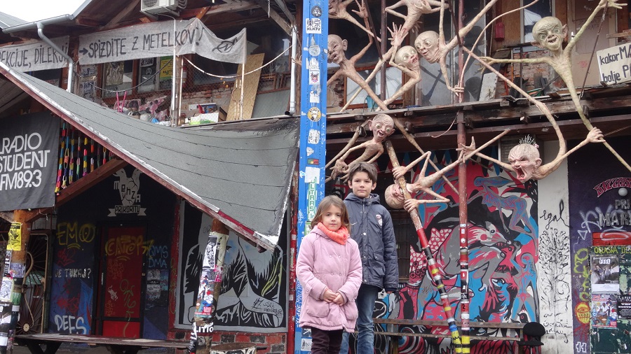 En rentrant vers le camion, nous repassons par une ruelle qui longe le canal de la ville et qui semble être la rue des artistes et le lieu de vie de Ljubljana. Encore une fois, il n’y pas 1m² sans tag mais nous nous sentons à l’aise, un peu comme un vieux papier peint auquel on se serait habitué.