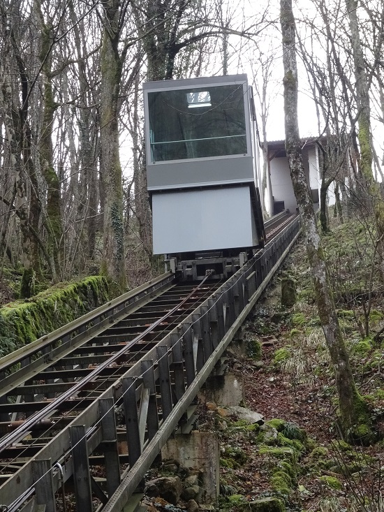 La visite terminée et un nombre incalculable de marches gravis, nous terminons la sortie du gouffre par un petit funiculaire et regagnons le camion pour déjeuner.