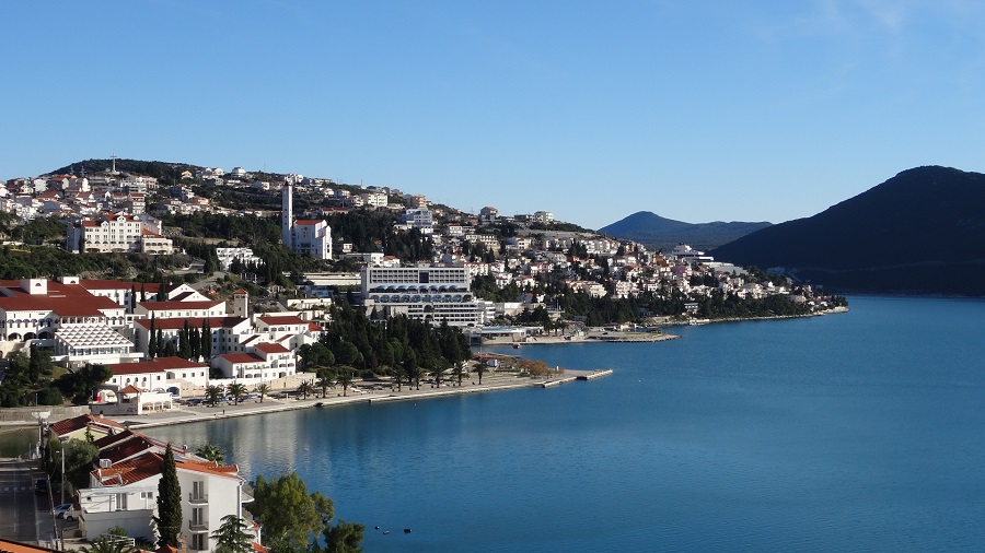 Passé Mostar, nous traversons le petit village de Potčiltelj avec son château, sa mosquée et ses petites maisons traditionnelles à flanc de montagne et gagnons la frontière Croate. Nous retrouvons le bord de mer et ses lumières hivernales magnifiques. Notre GPS a décidé de refonctionner au passage de la frontière, mais 30km plus loin, il nous annonce de nouveau une frontière alors que nous ne sommes toujours pas arrivés à Dubrovnik. Notre GPS serait donc devenu fou !!! Mais non, il s’agit de l’accès à la mer Adriatique de la BOSNIE qui a établi ici, sa seule et unique ville Balnéaire « NEUM » … Ils y ont mis les moyens, car ce maigre littoral de quelques 9km de long est urbanisé à outrance afin de profiter pleinement de leur coin baignade. Retour en Croatie où nous découvrons quelques 50 km plus loin la magnifique cité de Dubrovnik sous le Soleil Couchant.