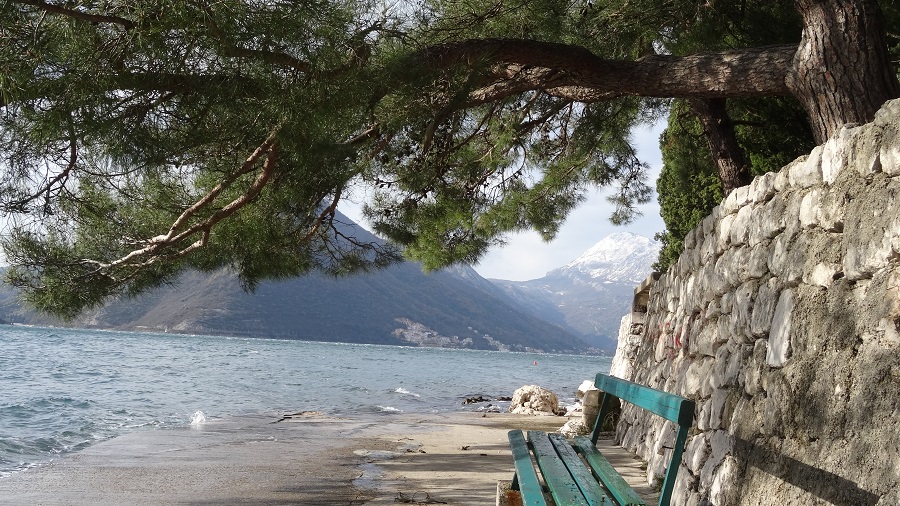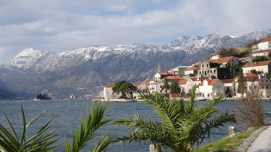 Nous filons ensuite sur Perast, toujours au bord du fjord, considéré comme l’un des plus beaux villages baroques de la région. Nous ne sommes déçu, ce site est splendide, de plus, le vent a chassé les nuages et nous offre une magnifique lumière. Nous traversons tout le village et nos yeux se régalent des paysages, des belles demeures, des ruines, des petits ports, nous pouvons y admirer aussi deux petits îlots dont chacun est constitué d’une église, l’une catholique et l’autre orthodoxe, qui se font face.