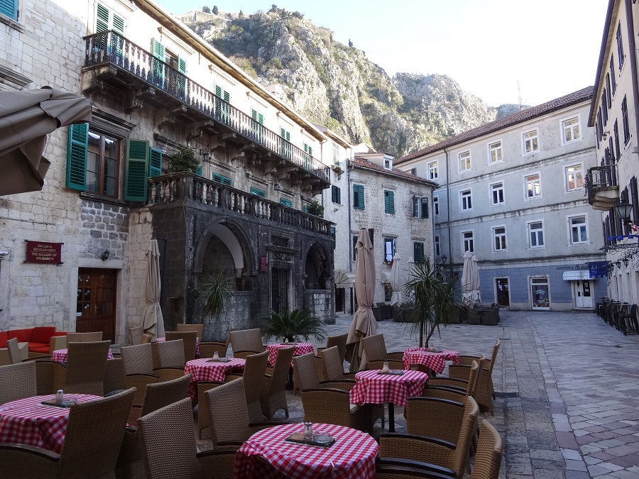 Après cette belle découverte, nous partons pour la cité médiévale de Kotor blottie entre la mer et la falaise. Nous nous stationnons à 10 mn de l’entrée de la cité et arpentons dans un premier temps son petit port où sont amarrés de magnifiques yachts. Nous pénétrons ensuite dans la ville close où nous découvrons un dédale de ruelles, de placettes pavées, de chapelles et de palais, Kotor n’a rien à envier à sa voisine croate, Dubrovnik.