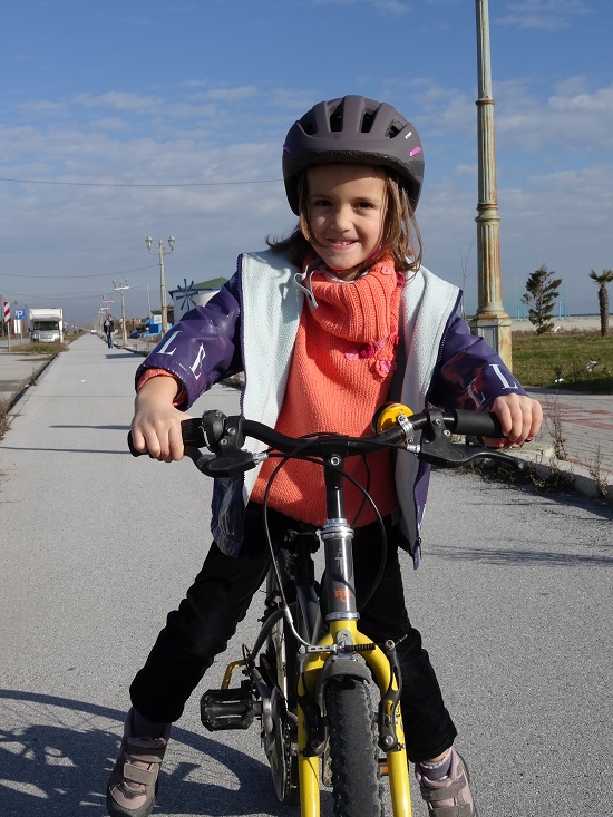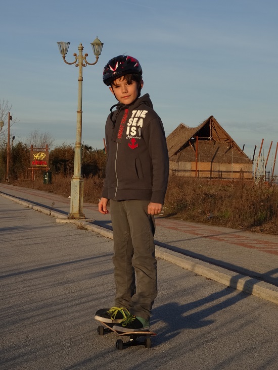 Nous trouvons un spot sur le bord des plages avec une balade piétonne et cycliste longeant le littoral sur presque 3 km. Nous allons passer notre première nuit en Grèce sur le bord de la mer Egée ! Sitôt le camion stationné, Antoine monte sur son skate-board, Anna sur son vélo et c’est parti pour le grand air après deux jours de camion sans véritables sorties détentes.
