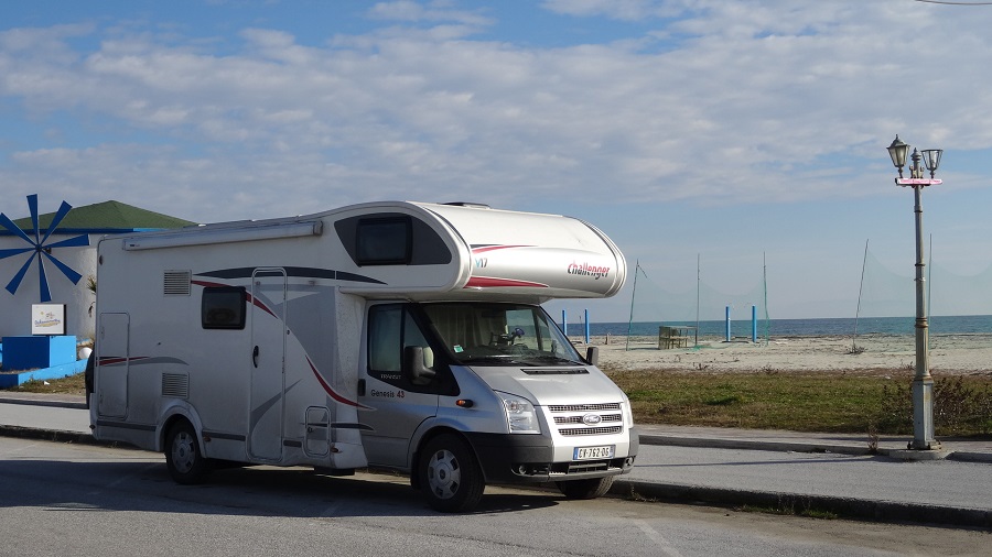 Retour ensuite sur notre spot d’hier en bord de mer où nous allons discrètement nous positionner à côté du bar où nous avons bu un coup hier et subtilisé au passage le code WI-FI. C’est l’occasion de mettre à jour le blog des deux derniers jours et de faire nos recherches pour prendre le bateau en direction de la Crète afin de pouvoir boucler notre tour avec le point le plus méridional d’Europe.