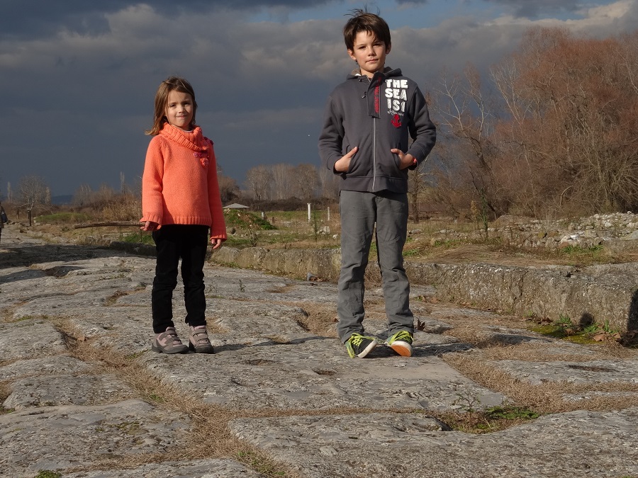 Il est temps de se dégourdir les jambes et nous prenons le camion en direction du petit village de Dion pour découvrir les vestiges d’une ancienne cité Macédonienne. Ce site était aux Macédoniens ce qu’Olympe était aux Grecs et nous permet de découvrir nos premiers vestiges antiques. Antoine trouve que la route de la vieille cité n’est pas en super état, mais après lui avoir expliqué qu’elle a été construite il y a 2000 ans, il s’aperçoit qu’elle vaut largement les piètres routes bétonnées de Serbie !!!