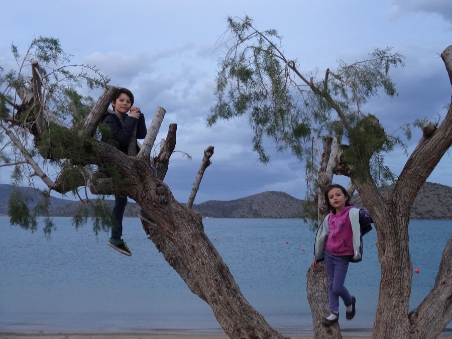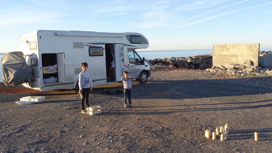 Pour la nuit nous repartons vers le petit village de Malia où les plages s’avèrent nettement plus propres. Nous faisons une longue pose, l’occasion pour les enfants de jouer un peu et de ressortir notre jeu de MOLKI qui nous a finalement bien encombré la soute depuis notre départ.