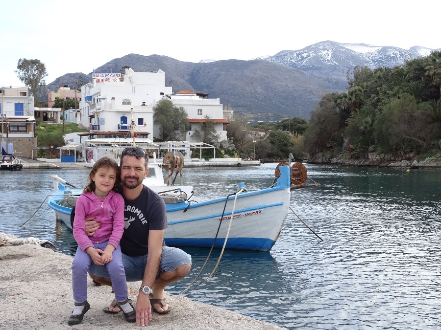 Vive la crète et ses magnifiques paysages et, enfin, un soleil généreux qui va vous permettre de ressortir les vélos pour aller dénicher des endroits inaccessibles avec bouba (laissez-le se reposer un peu le pauvre…il en a bien besoin et aimerait bien lui aussi une bonne douche!!). Les enfants semblent ravis eux aussi de pouvoir profiter de cette île magnifique et du coup Philippe a sorti ses tongs (attention quand même de ne pas prendre froid par les orteils!!).