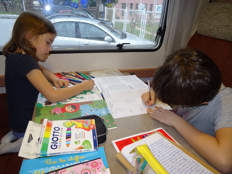 La nuit a été agitée sur le petit port d’Elounda, un bel orage a arrosé Bouba toute la nuit et notre sommeil en a été perturbé. La journée ne s’annonce pas mieux puisqu’il continue de pleuvoir. Nous prenons tout notre temps ce matin pour faire la classe et invitons nos voisins, Olka et Lilian à partager un café bien au sec dans notre camion, l’occasion pour nous de faire un peu plus connaissance avec ce couple très sympathique et de bons conseils sur la Crète, qu’ils connaissent sur le bout des doigts.