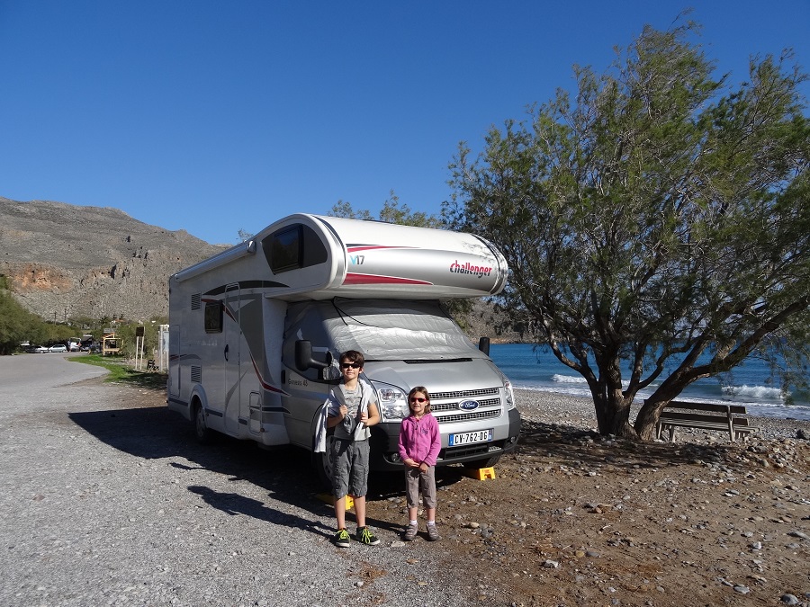 Nous arrivons enfin à Ierapetra et sur les conseils d’Olka et Lilian, nous nous stationnons sur le parking public au bord de la marina qui offre en plus du WIFI. Nous avons juste oublié qu’aujourd’hui nous sommes samedi et qu’il risque d’y avoir du monde, tant pis, nous sommes trop bien installés pour bouger.