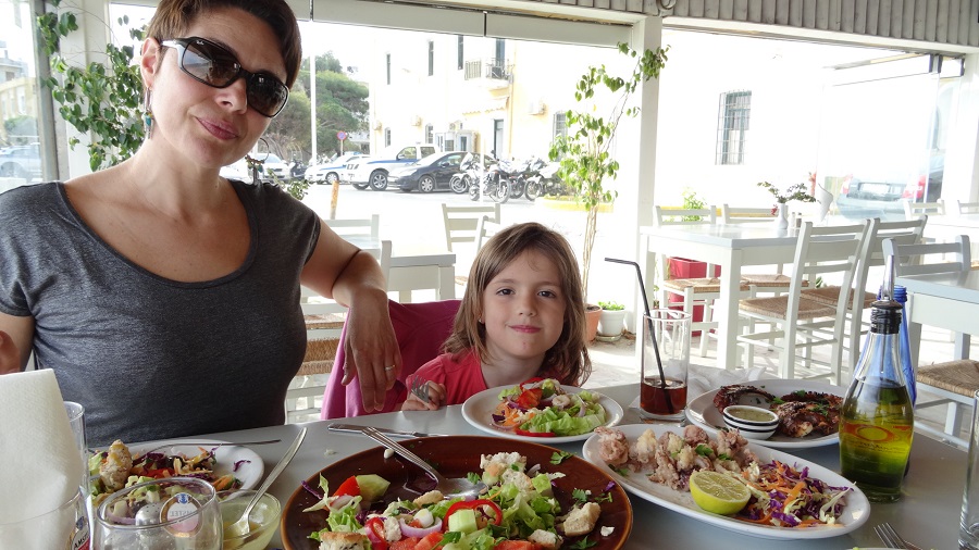 Après notre petite ballade, la faim se fait sentir et nous nous installons dans un petit restaurant grec pour y déguster les fameuses salades grecques avec poulpes et autres calamars, un vrai régal et la satisfaction d’avoir mangé sainement. Le dessert nous est même offert par le restaurateur, le fameux yaourt grec accompagné de pruneaux et de cacahouètes (nettement moins light), nous vous avions bien dit que les Grecs étaient très sympathiques….