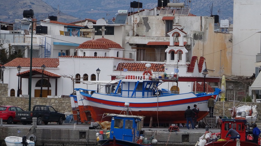 La nuit a été moins tranquille que dans le petit village de Kato Zákros, mais tout de même tolérable. Comme nous sommes arrivés de nuit hier, nous partons découvrir la petite ville et le port de Ierapetra. Nous sommes dimanche aujourd’hui donc pas beaucoup de vie dans le village mais ça correspond tout à fait à ce que nous sommes venus chercher en Crète, du repos et la tranquillité.