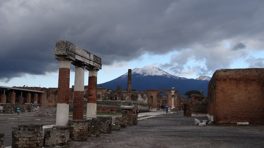 Dans les monuments incontournables à ne pas louper, nous allons voir les arènes, les thermes dont on peut imaginer la splendeur d’antan, les nombreuses échoppes de vins, les restes des maisons bourgeoises…. La cerise sur le gâteau reviendra à la place Foro avec sa vue superbe sur le Vésuve.