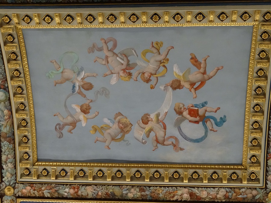Si quelqu’un se reconnaît dans le tableau ?? si on sait que par définition les anges n’ont pas de sexe… pas sur qu il va y avoir beaucoup de candidats à se reconnaître dans ce tableau !! Moi je ne m’y vois pas. Et pourtant c ‘est fou le nombre de personnes qui m’ont déjà dit « t’es un ange ». Quant à la carte qui est sensée représenter la corse ( titre « CORSICA) » il semble que le GPS du père françois mérite une petite mise à jour !! moi je trouve que ça ressemble plus à un poisson baliste ou carangue plus très fraiche qu’ à l’ile de beauté. ( a moins que la carte ne soit à l’envers??)Au delà de ça faut reconnaître qu il a un bon coup de pinceau celui qui a fait ces peintures !! si vous le voyez demandez lui s il est libre prochainement j ai le plafond de mon salon à repeindre.