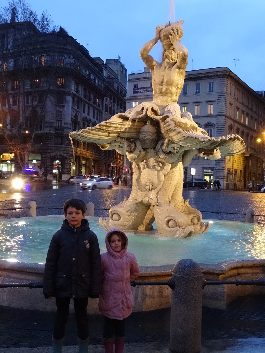 Malheureusement, nous arrivons au pied de la fontaine pour nous rendre compte qu’elle n’est pas visible, elle est entièrement entourée d’échafaudages pour un programme de grande rénovation, dommage… La nuit est déjà tombée depuis un petit moment, il pleut à grosses gouttes, il est temps de rentrer au camp. Le retour ne se fera pas dans de bonnes conditions dans un bus bondé et surchauffé et nous sommes heureux de nous retrouver dans notre Bouba. Le temps de dîner et de lire une histoire aux loulous et tout le monde au lit pour être en forme demain pour notre deuxième journée de visite de Rome.