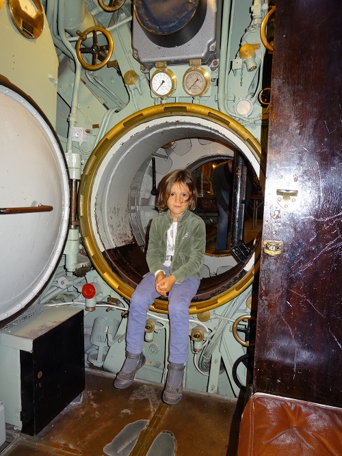 Les visites sont super intéressantes pour les grands et les petits, avec en plus, au Musée, de belles expériences comme découvrir, entre autres, l’intérieur d’un sous-marin. Je vois d’ici le regard aiguisé d’Antoine … et d’Anna car elle ne lâche rien, elle non plus. Que de choses à nous raconter au retour…