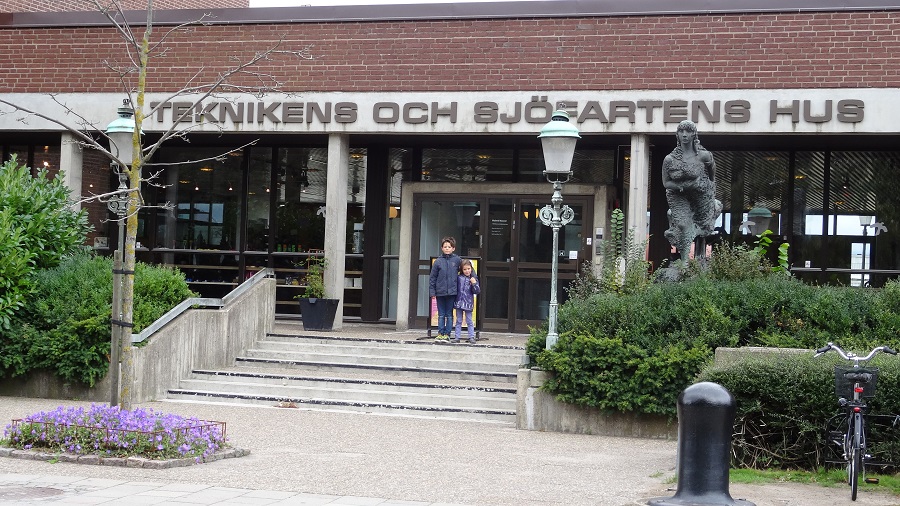 Nous programmons les cours l’après-midi afin de profiter pleinement des deux musées et de la visite de la ville que nous avons au programme. Nous débutons par le « Technikens och sjöfartens hus », qui est un musée plutôt orienté Sciences, avec l’histoire de l’aviation, de l’automobile, des équipements ménagers bref un mélange d’un peu tout avec voitures, motos, aspirateurs, avions de chasses et même un sous-marin au complet que nous avons pu intégralement visiter- voir photo- (du grand bonheur quand on aime la technique). Le dernier étage nous permet de faire un tas d’expériences incalculables : de la simulation d’un trou noir, aux mouvements oscillatoires, le fonctionnement de la pile à Hydrogène… et des dizaines d’autres. Je ne sais pas si ce sont les enfants qui se sont le plus éclatés mais le ciblage était judicieux !!!