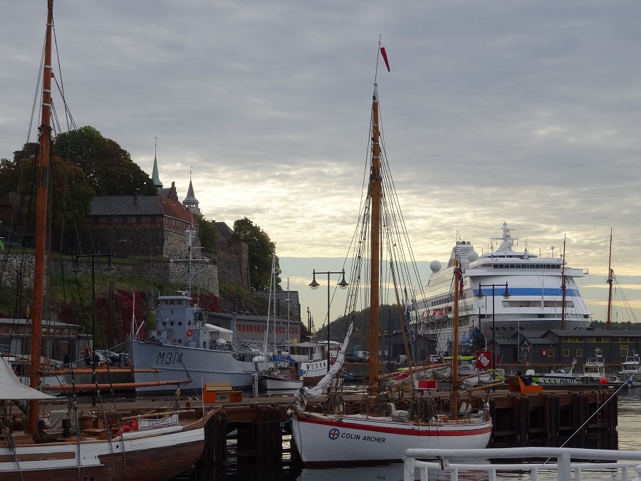 Après quelques heures de sommeil au calme sur notre quai, nous nous réveillons toujours sans compagnon de route, la grosse croix rouge à l’entrée de l’aire de service de camping-cars y est peut-être pour quelque chose….renseignements pris auprès d’autochtones, on nous informe que l’aire est fermée depuis le 20/09 comme c’est indiqué à l’entrée (nous pas comprendre, nous pas norvégien, nous français) et qu’on nous a rien dit mais faudrait quand même pas rester (nous comprendre que nous devons dégager…) on nous indique un parking un peu plus proche du centre-ville ou stationnent souvent des camping-cars, sympa quand même les Norvégiens !!!