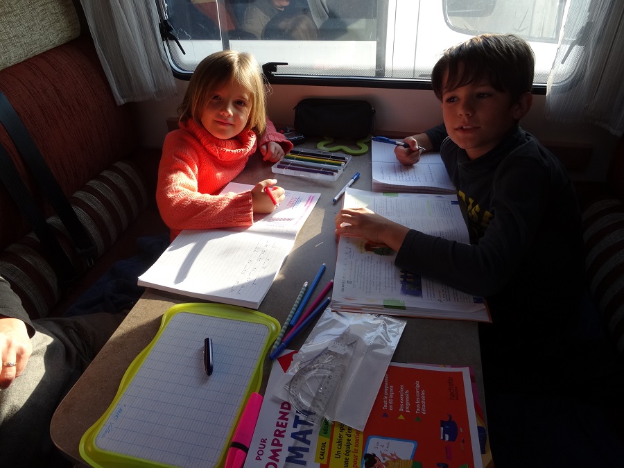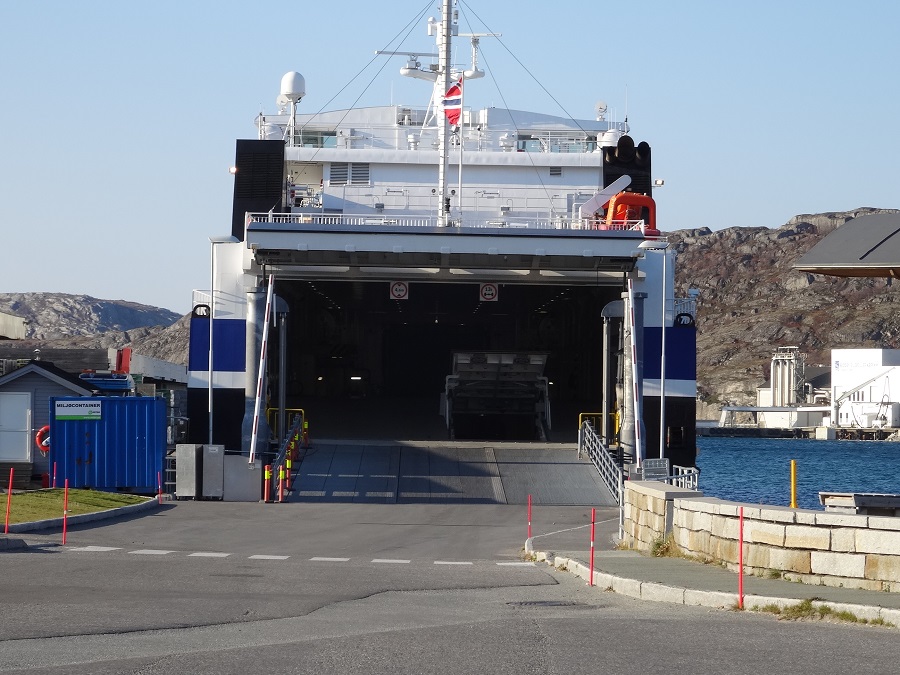 Après une bonne nuit avec nos copains routiers, nous partons vers l’office de tourisme pour prendre des infos sur les horaires du bateau et pour profiter du WIFI (faut bien qu’on mette notre blog à jour, vous êtes certainement d’accord sur ce point – d’ailleurs un grand merci à tous pour tous vos commentaires, ça nous encourage à maintenir le rythme des publications et ça nous fait super plaisir de vous lire à notre tour) ; renseignements pris, nous faisons le plein de nourriture (ouille super cher la Norvège, mais la diète n’est pas au programme) et allons stationner Bouba sur la file de départ pour prendre le bateau, le départ est prévu à 16h30 ce qui nous laisse le temps de déjeuner et de faire l’école qui a été exceptionnellement décalée.