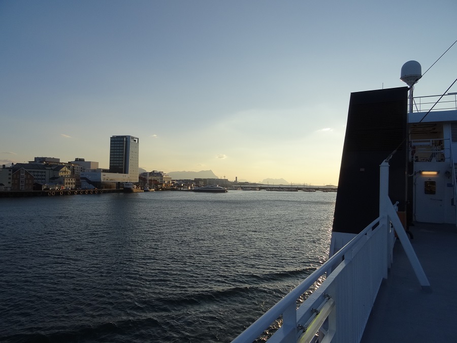 16H, il est temps d’embarquer et bonne surprise, nous payons la ½ de ce que nous avions prévu – l’agent chargé des encaissements nous compte en catégorie inférieure à la nôtre, c’est la bonne nouvelle de la journée!!! Nous avons le bonheur de croiser, sur le bateau, quelques étudiants Erasmus français qui vivent à Oslo et qui viennent passer eux aussi quelques jours dans le Lofoten, ça fait du bien de parler à des gens !!!