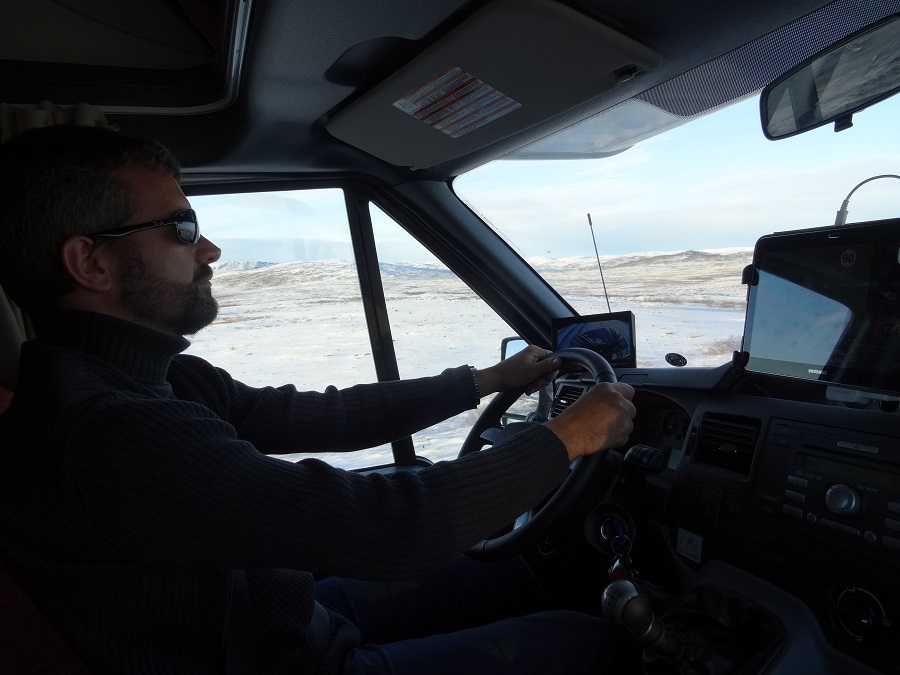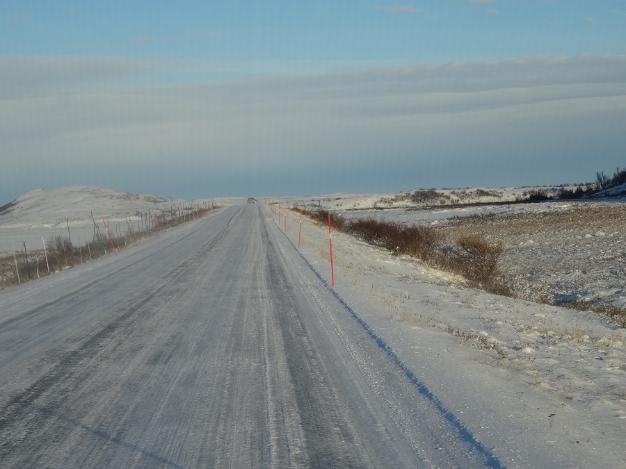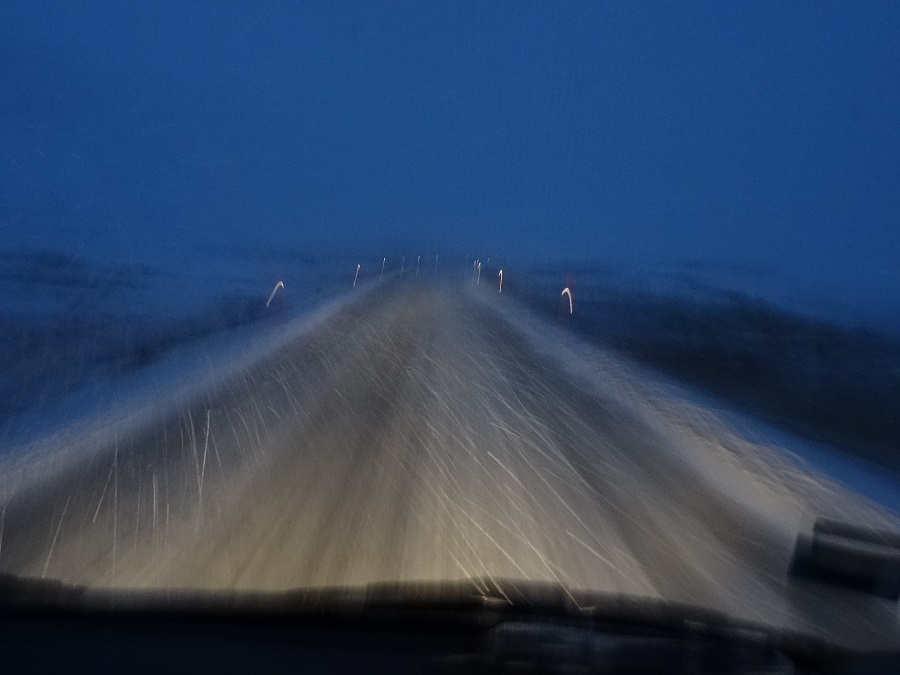 Il est 6h00 du matin, nous entendons le chasse neige passer à côté de nous, nous allons pouvoir décoller ce matin pour faire les 40 kilomètres nous permettant d’atteindre la partie la plus septentrionale d’Europe (on apprend de nouveaux mots en voyages !!). La route est recouverte de neige sur tout le trajet, mais nos clous accrochent bien et notre vitesse de croisière n’excède pas les 50Km/h. Nous arrivons enfin au cap nord après avoir acquitté un droit d’entrée faramineux mais nous n’avons pas de problème pour stationner car nous ne sommes que trois sur le parking, maintenant place aux paysages du bout du monde…