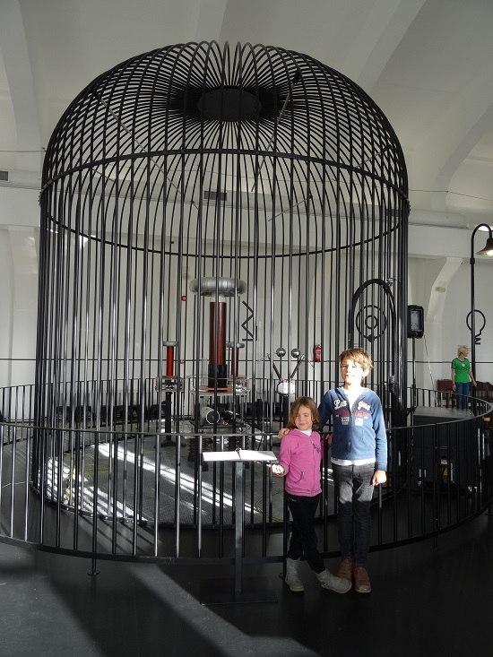Au menu aujourd’hui, visite de l’ENERGIA AVASTUKESKUS de TALLINN, un musée très ludique sur les Energies, installé dans une ancienne centrale Thermique Russe. Le bâtiment est massif et présente sur trois étages toutes les formes d’énergies (vibratoires, diffraction de la lumière, cinétiques, acoustiques,…) ainsi que les modes de génération de l’électricité. Les enfants s’éclatent sur la multitude de stands plus éducatifs les uns que les autres. Au dernier étage c’est le clou de la visite, avec une génératrice à éclairs (la plus importante d’Europe visible par le public) qu’ils mettent en route une fois par jour à midi. Tout le monde se réunit autour d’une protection qui ressemble étrangement à une cage d’autruche, et après avoir fait une rapide démonstration sur l’énergie statique et les cheveux qui montent en l’air, place au grondement de la génératrice qui doit mettre à genoux le transformateur de la ville et nous voyons apparaitre les arcs électriques de presque 2m tout autour de la cage.