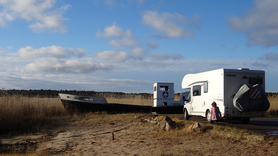 Après un rapide déjeuner nous partons direction NARVA et en profitons sur la route pour découvrir une cascade située sur une incongruité géologique : il s’agit d’un plateau calcaire qui s’est effondré et a créé une chute de 7m, loin des chutes du Niagara mais elle fait tout de même son effet !!! La nuit commence à tomber et nous en profitons pour rouler un peu afin de gagner un petit village de pêcheurs au nord de l’Estonie. Nous traversons, sur de petites routes de campagne, des forêts dignes des contes de GRIMM que nous racontons le soir aux enfants. Nous nous demandons où nous allons bien pouvoir dormir !!! Arrivée à destination nous ne trouvons pas le petit port type « calanque » que nous attendions, nous poussons un peu plus loin et finissons sur le bord de mer dans un décor, qu’une fois de plus, nous ne pourrons découvrir que le lendemain.