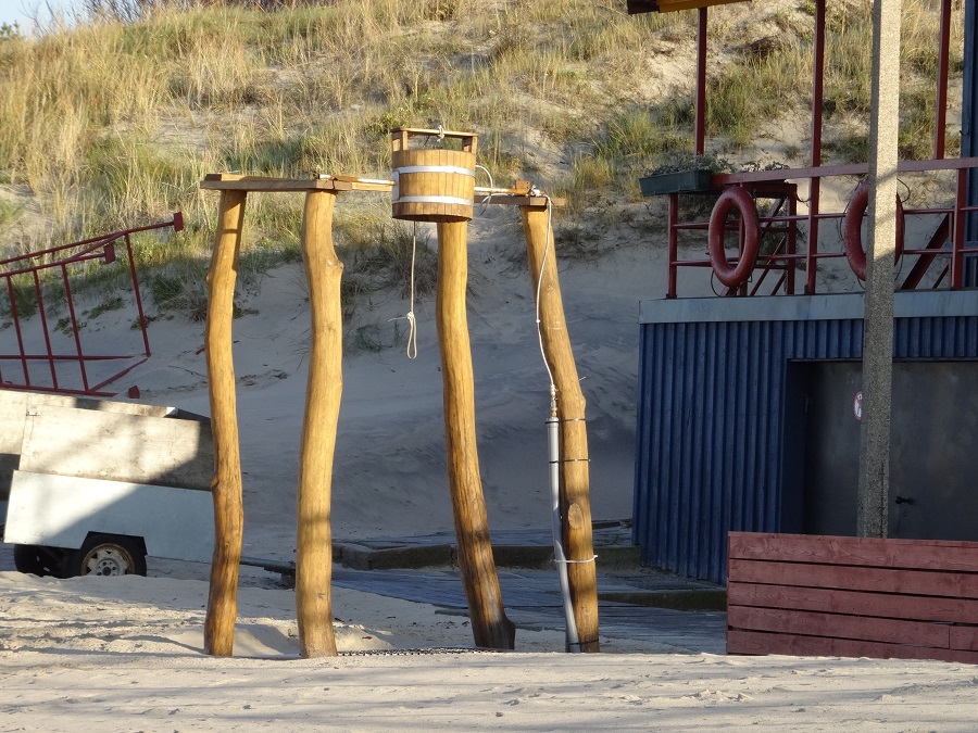 Nous nous réveillons sur un site dédié aux piétons et vélos, en clair pas spécialement un parking pour notre char. Nous avions également eu l’idée de nous poser directement sur la plage, mais la remontée aurait été plutôt compliquée. Le ciel bleu est de retour et après le petit déjeuner nous filons profiter d’une bonne balade matinale sur la plage. Avec le même fanatisme que les finlandais, norvégiens et suédois, nous avons droit à des gaillards (pas de féminines pour le coup) sortant d’un sauna et courant se baigner dans la mer baltique, non sans s’être versés un saut d’eau glacé au passage.