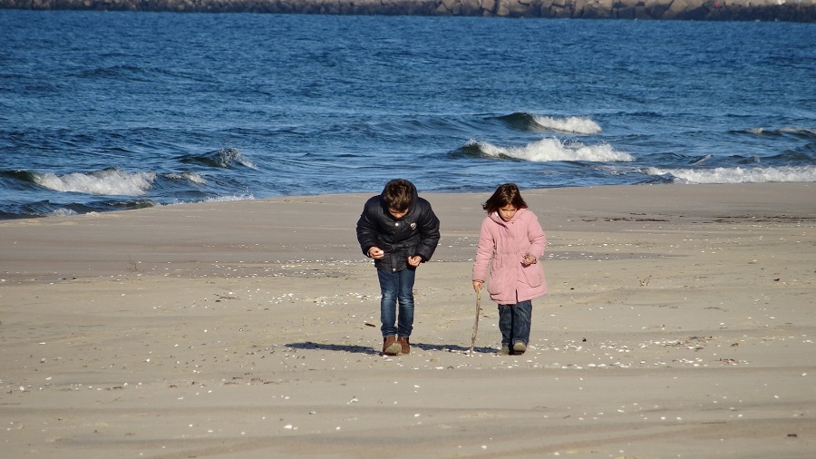 Pas de soucis, nous passons au lavage à la main, pour le plus petit linge et filons à la découverte de ce bout de terre assez atypique (environ 75 km de long sur 1500m de large). Direction le cordon dunaire séparant la mer baltique du lagon. Une brume marine nous recouvre soudain en quelques minutes et nous voilà plongés au milieu des dunes dans un brouillard opaque ne nous permettant de voir ni la mer, ni la lisière de forêt de pins que nous venons de quitter quelques minutes auparavant. Nous voilà transformés en véritables aventuriers des bacs à sable en grandeur nature. Les enfants partent à la découverte des traces d’animaux sur la dune et nous finissons au bout d’une bonne demi-heure par retrouver le port sur lequel nous avons élu domicile.