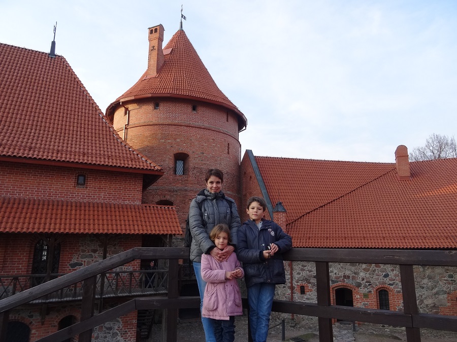 Après une bonne nuit et l’école faite, direction le château de l’Ile de Trakai. Il s’agit d’un superbe château construit sur une Ile (le seul en Europe de l’est), sa construction a débutée au 14ème siècle sur la plus grande île du lac Galvė, le château a été entièrement reconstruit selon les plans originaux entre 1962 et 1987. La vue du château depuis la ville de Trakai est magnifique et nous avons de la chance, la brume omniprésente ces derniers jours est enfin partie pour faire place à une belle lumière.