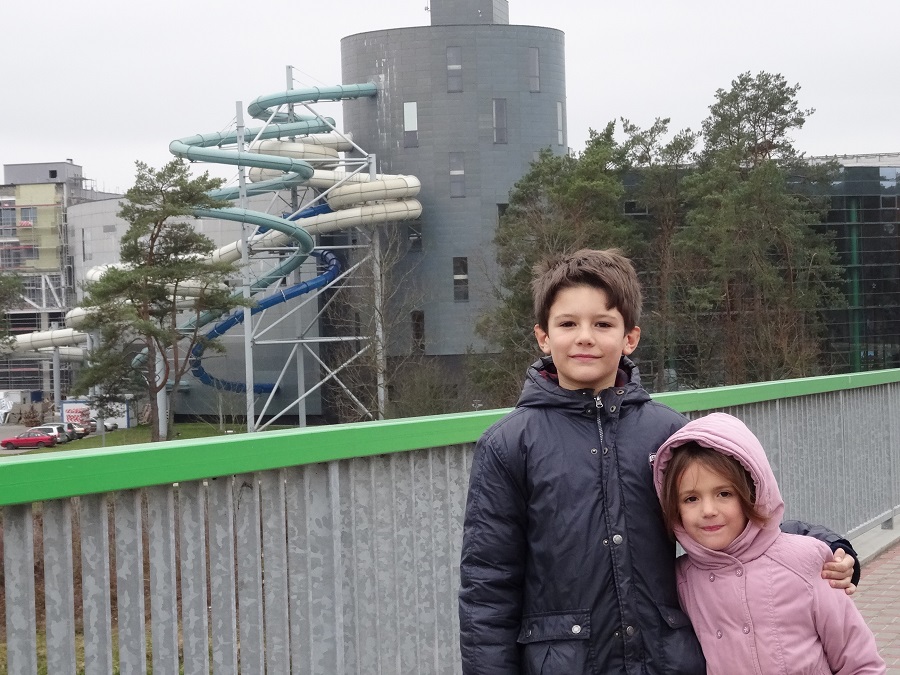 Nous déjeunons à 12h pile pour être au plus tôt au parc aquatique et profiter des 3h que nous allons nous offrir (le prix du billet d’entrée est fixé selon le nombre d’heures désiré). Ce superbe parc est un vrai bonheur et fait la joie de toute la famille. Pour Anna c’est l’occasion de sauter toute seule dans l’eau et de profiter de l’espace enfants avec tout un tas de jeux d’eau, au programme pour Antoine, descente de gigantesques toboggans aquatiques et première expérience dans un hammam. Pour les grands c’est toboggans, piscine à vagues, rivière à courants, jacuzzis, hammam… bref un bon moment de détente qui à chaque fois nous fait un bien fou et recharge nos batteries. Ce centre offre aussi tout un tas de soins (massages, soins du corps…) dans un espace dédié au plus de 18 ans mais pour ça faudra revenir en amoureux.