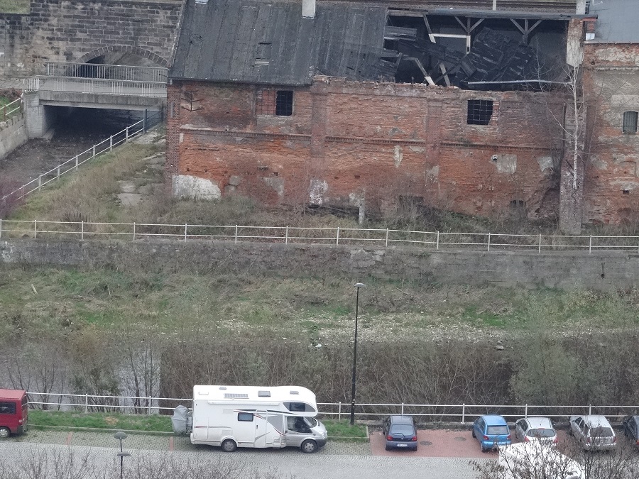 Arrivée à destination, nouvelle déception, Klodzko garde encore quelques façades de l’ancien temps mais malheureusement beaucoup de bâtiments tombent en ruines et nous offre un visage triste et sinistre, en témoigne le parking sur lequel nous garons Bouba.