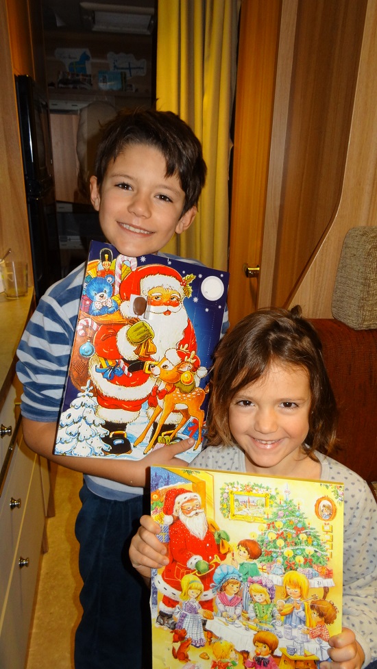 Quelque peu rassurés de l’accueil et de la perspective de trouver du gaz (une vrai galère à chaque fois et c’est pas fini !!!), nous avons tous bien dormi. Nous sommes le 1er décembre et les enfants se précipitent sur leurs calendriers de l’avent pour dévorer leur chocolat du jour, le compte à rebours à commencer pour la grande joie d’Antoine et d’Anna.