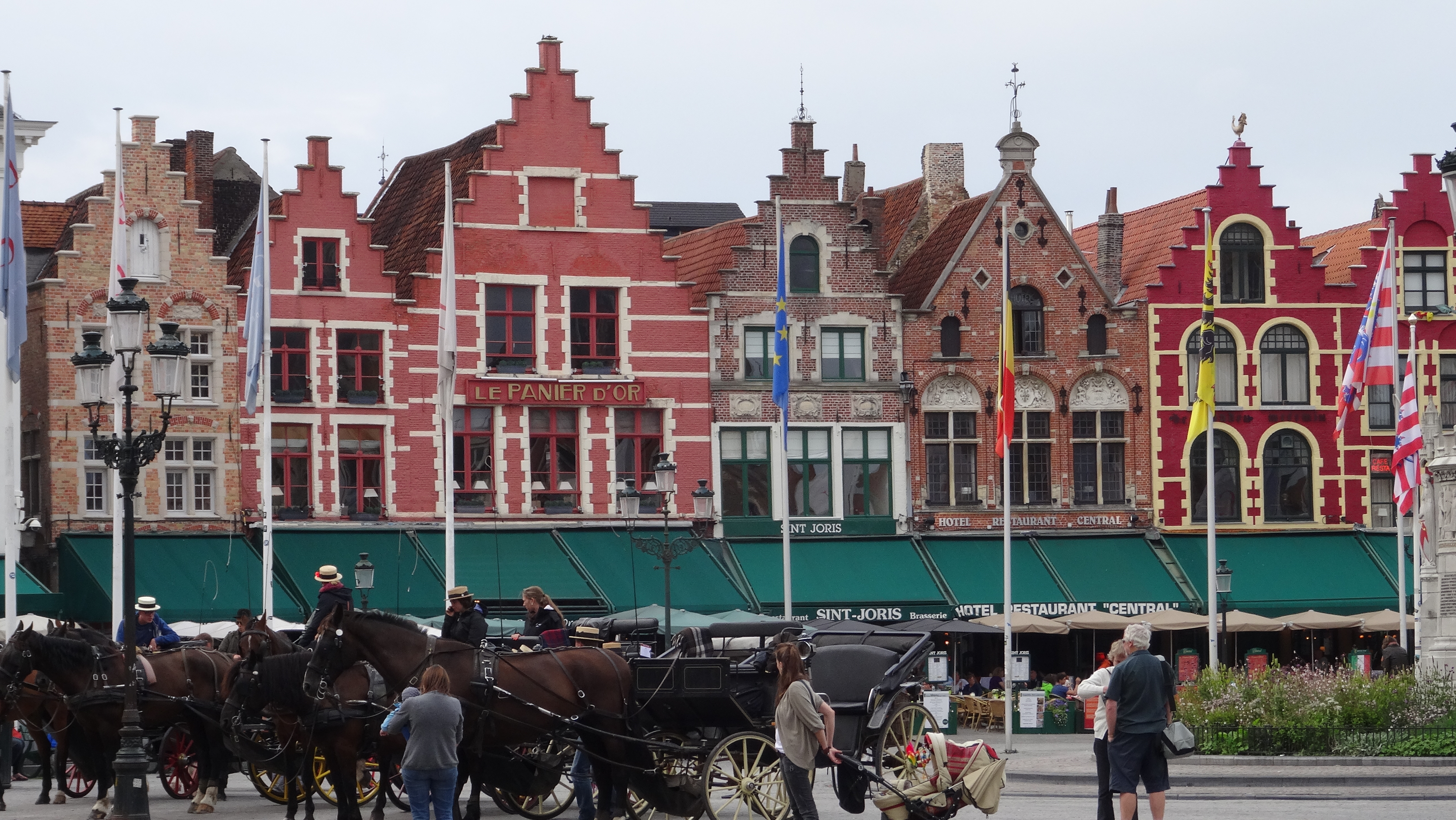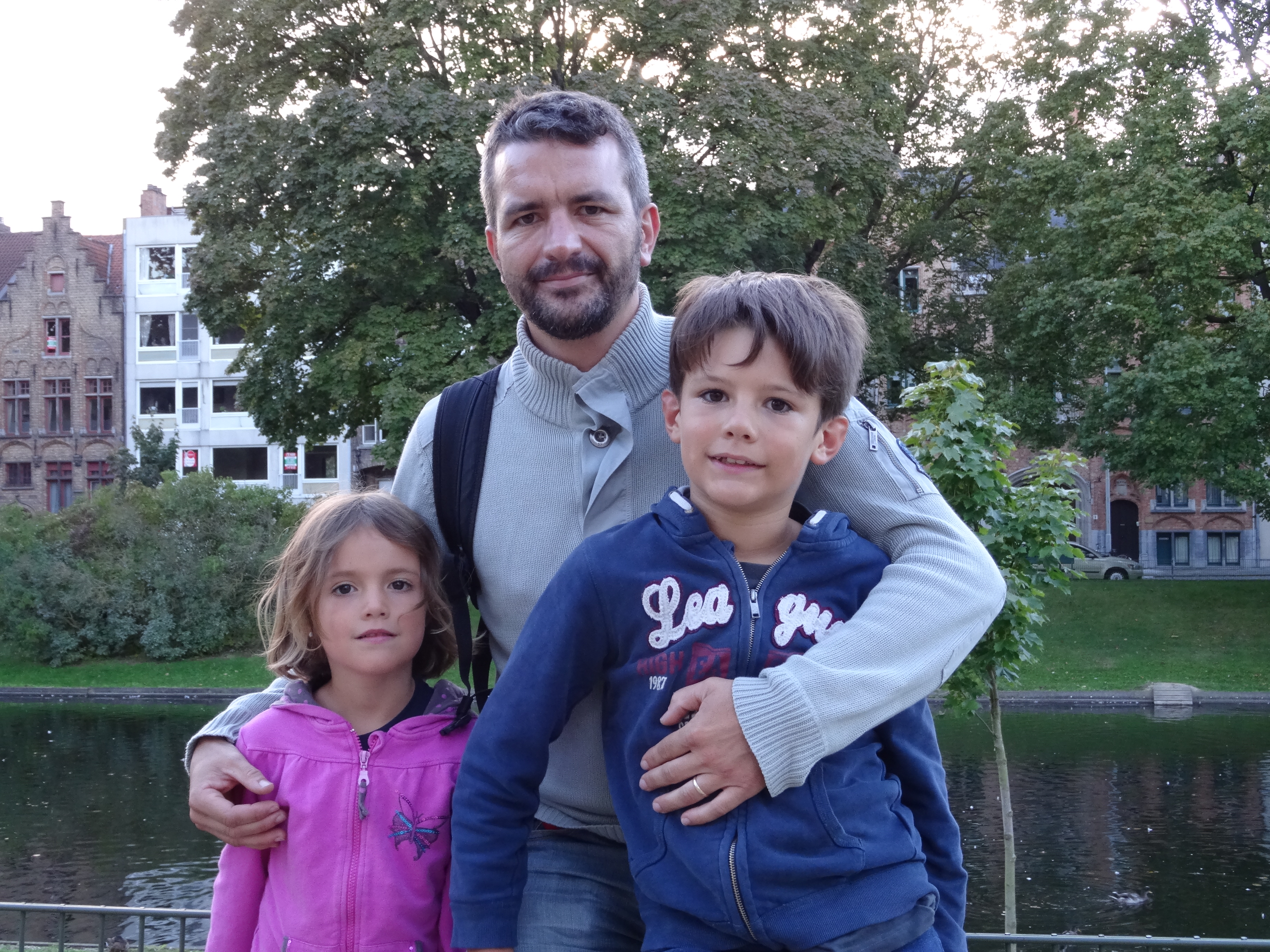 1ère étape du voyage, BRUGES ou nous sommes arrivés dimanche 31/08 en fin de journée après 2 jours de route. 1ère préoccupation, où allons-nous nous poser et passer la nuit ? Nous rentrons donc l’adresse indiquée dans notre carnet de route « le tour d’Europe en camping-car » ou nous sommes censés arrivés sur une aire de camping-car, mais ça saurait beaucoup trop simple et nous nous retrouvons en plein centre-ville de Bruges, autant dire, un chat dans un trou de souris !!! Demi-tour et renseignements pris auprès des citadins, nous stationnons sur le bord du canal, à côté d’un super parc pour les enfants et tout près du centre-ville, nous avons même l’audace d’y dormir. Mais avant, pour le diner, c’est moules-frites pour fêter nos 12 ans de mariage.