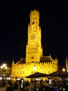 Finalement nous restons sur Bruges 2 jours de plus car la ville est magnifique (cf. photos) avec ses canaux (petit tour de barque en famille), son vieux centre-ville et son beffroi que nous avons visité – 366 marches descendues au galop par Anna terrorisée par le son des cloches !!! Et puis clin d’œil à Laurence, de superbes boutiques mais pas assez de place dans les placards du camping-car, dommage……..